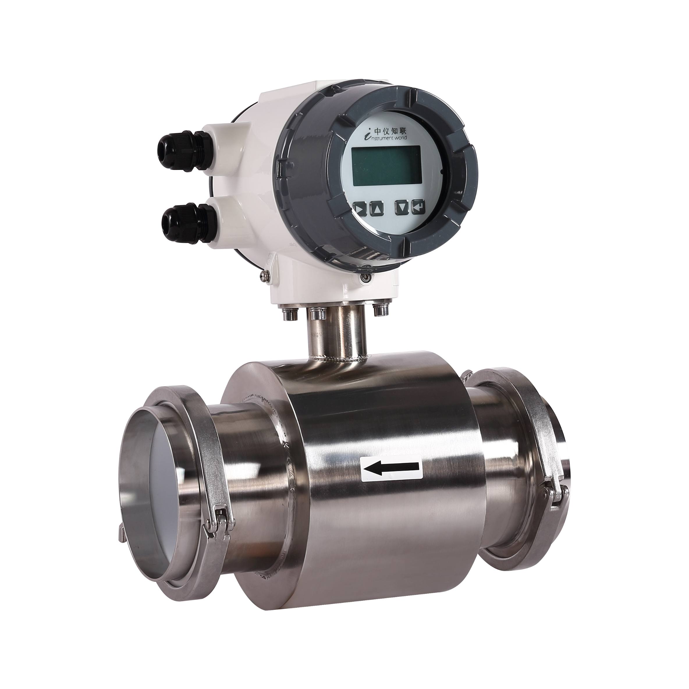 卫生卡型电磁流量计是根据法拉第电磁感应定律设计、制造,组成和功能与法兰型电磁流量计相同。不同之处是其米用卡箍式快装连接,适用于医药、食品等有卫生要求的行业,便于经常拆卸仪表进行清洁,以保证管道的卫生。管体采用全不锈钢制造,符合食品行业的卫生要求。